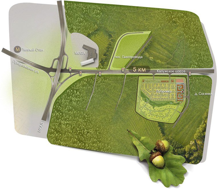 Как к нам доехать: двигайтесь вперед по Калужскому шоссе до поворота на улицу Сосновая.